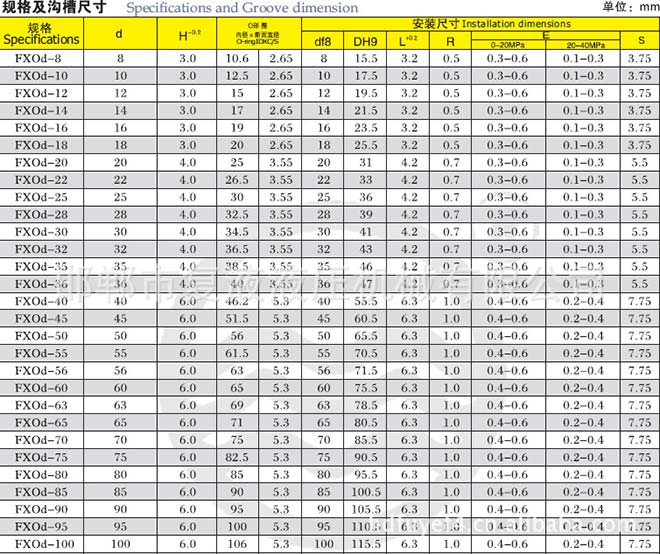 使用温度:-40℃~+200℃ (视O形圈的材质而定)