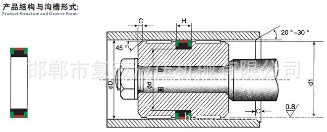 由两个挡圈,一个密封环和一个弹性橡胶圈组成,弹性橡胶圈提供了足够的预紧力,并对密封环的磨损起补偿作用,保证高压低压良好密封性能。与导向环配合使用。适用于液压油缸活塞密封,特别适用于高压、重载、长行程双向密封。